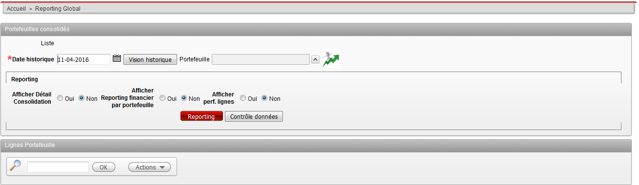 • Le bouton Vision Historique: permet d'afficher les informations dans la partie Lignes Portefeuilles à la date historique choisie.