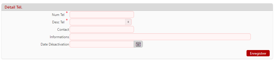 Les champs avec des astérisques rouges sont obligatoires pour pouvoir créer le numéro.