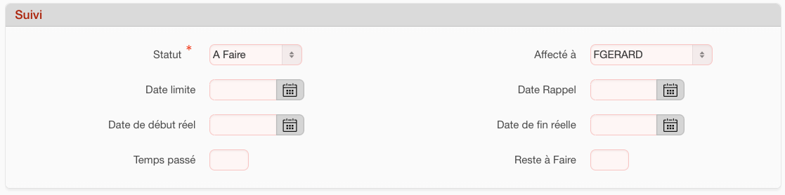 Statut: Cette liste déroulante de choix comporte les statuts de tâches qui ont été préalablement établis dans “Système > Paramétrage > Liste de Valeurs”: