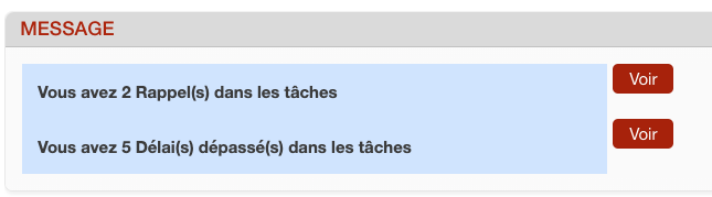 Quand la date limite est dépassée il y aura un message: “Vous avez x délai(s) dépassé(s) dans les tâches”