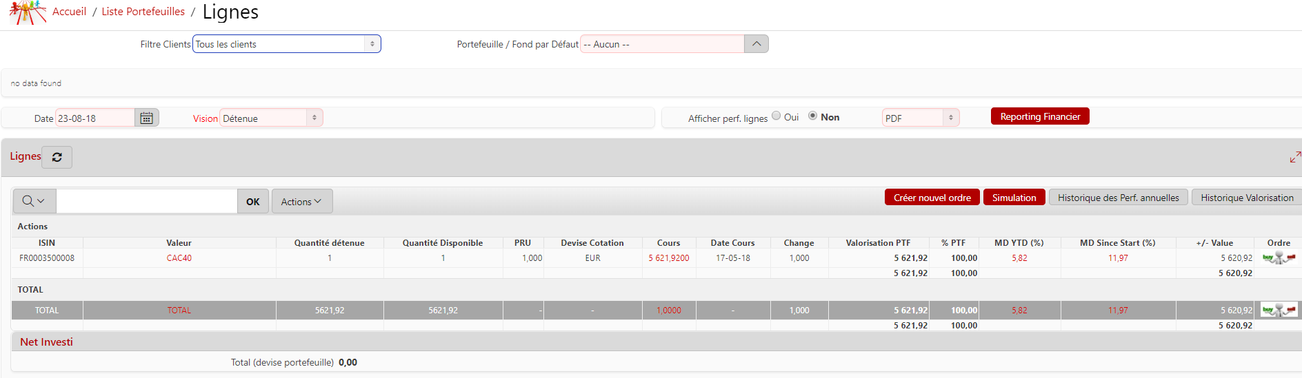 En cliquant sur l'icône des 'lignes', vous accédez aux lignes de l'indicateur qui correspond à l'écran des lignes du portefeuille.