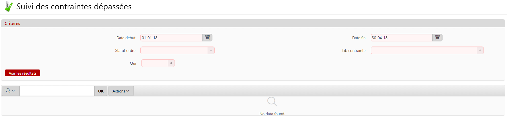 Description de l'écran : Cet écran permet de consulter les messages des contraintes qui ont été générés pour apporter les actions nécessaires afin de débloquer l'opération ou l'ordre porteur du message de la contrainte.