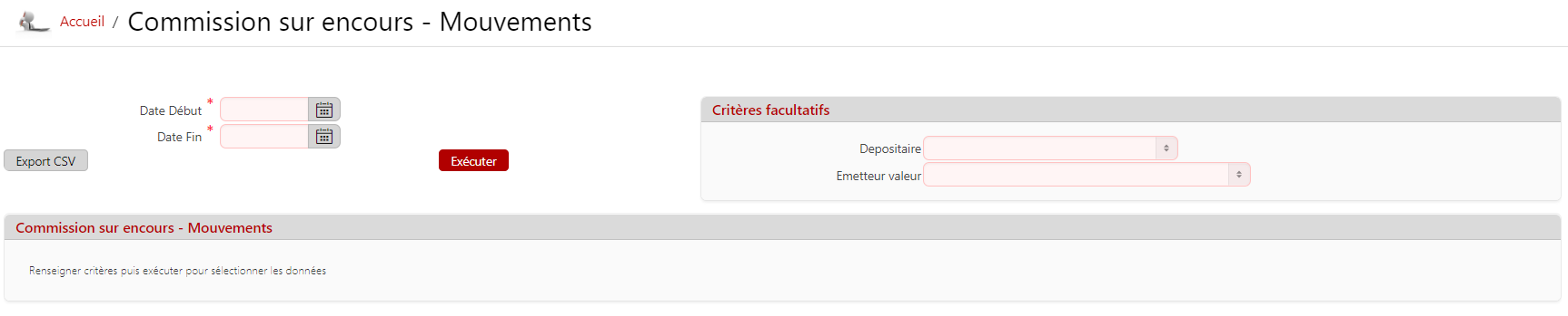 Le bouton 'Exécuter' permet d'afficher les mouvements selon les critères de sélection.