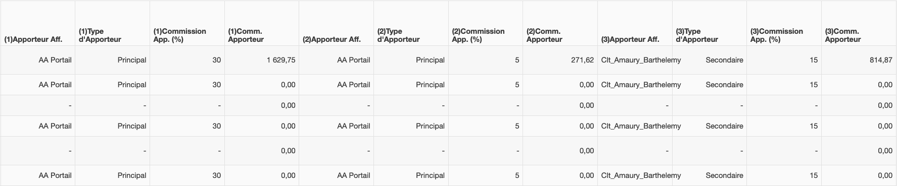 Chaque commission est calculée en prenant en compte le taux de la commission de chaque apporteur d'affaire à la fin de la période définie pour les calculs (