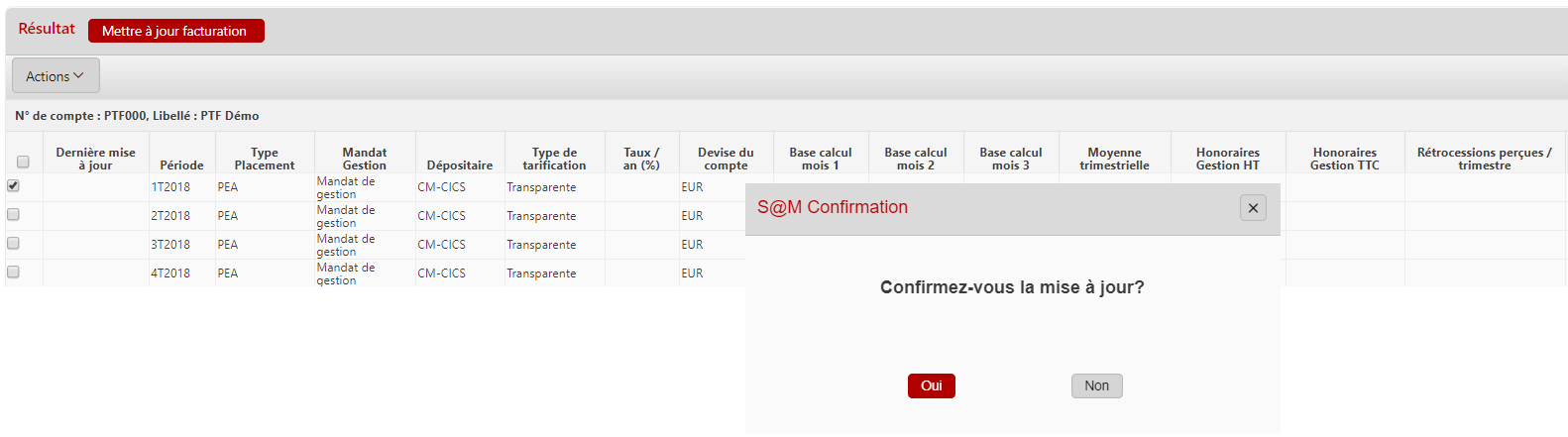 Le bouton 'Mettre à jour facturation' permet de XXX.