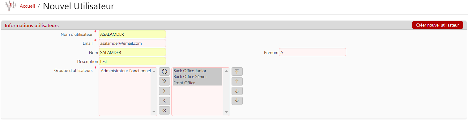 Pour créer effectivement le compte, cliquez sur le bouton “créer nouvel utilisateur”.