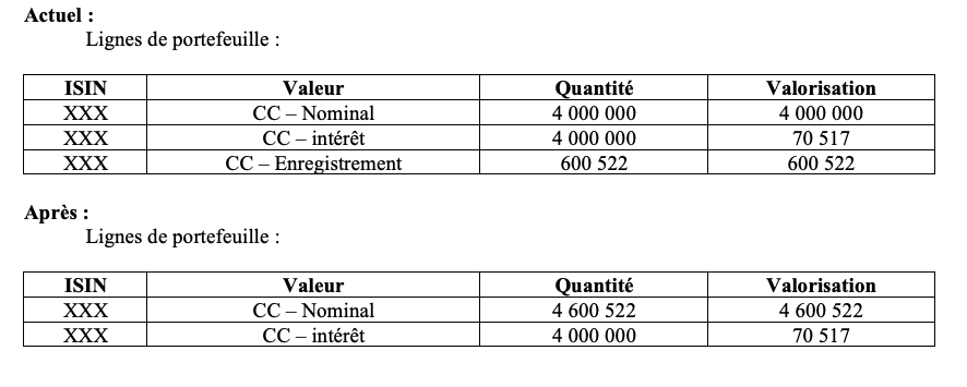 Elle permet de capitaliser les intérêts d'une valeur sur sa ligne de nominal