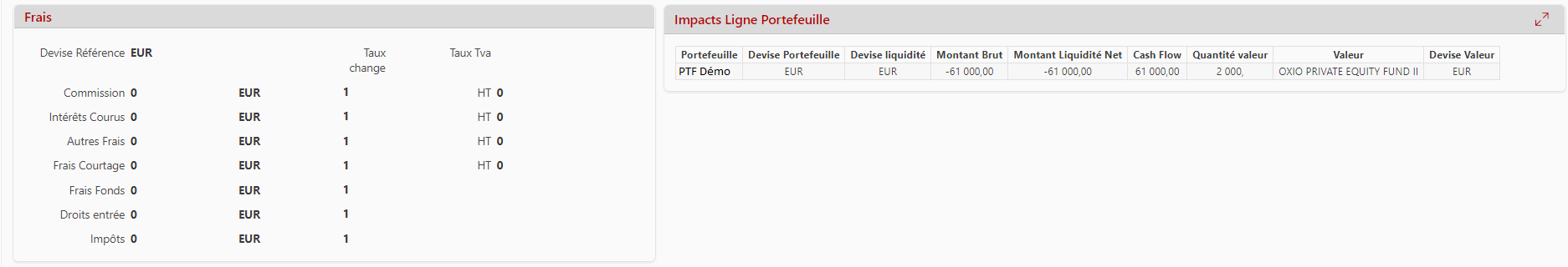 Ce panneau affiche un rapport permettant de visualiser l'impact de l'ordre sur le portefeuille.