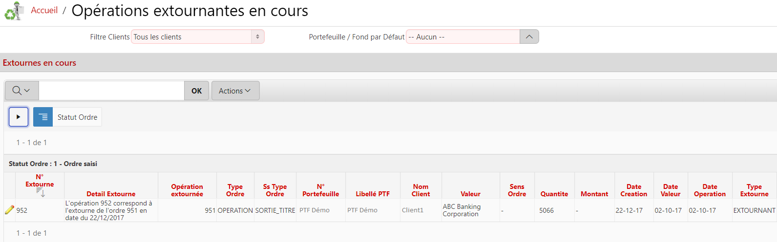la première colonne contient l'icône 'crayon'. En cliquant dessus , S@M redirige vers la page de validation ou annulation de l'opération d'extourne pour l'ordre ou l'opération de cette ligne.