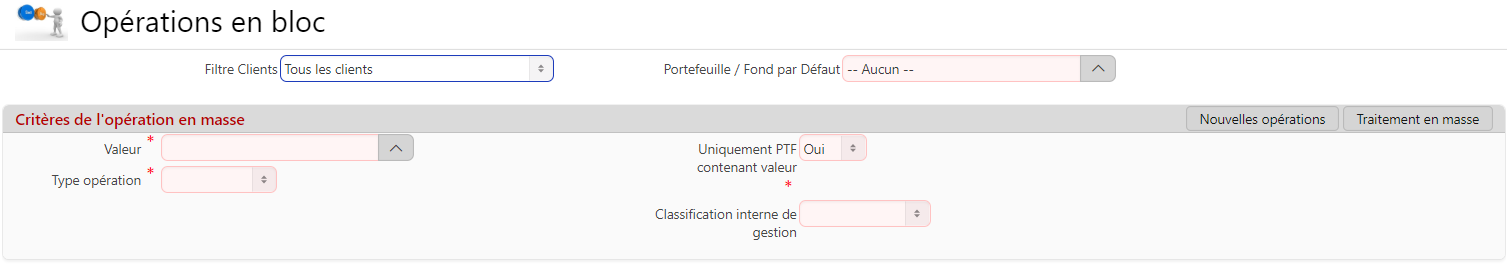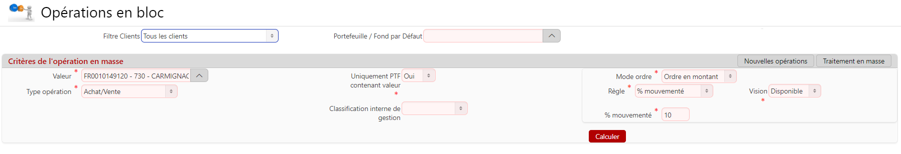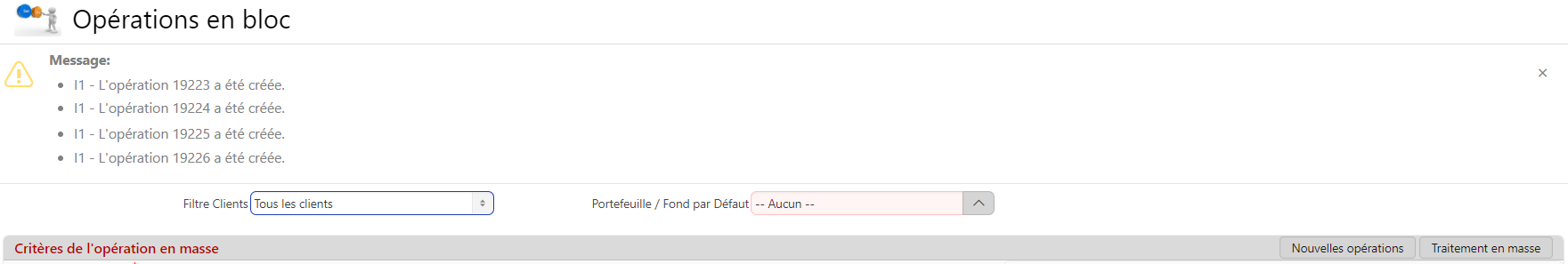 Pour effectuer une nouvelle opération en masse, cliquez sur le bouton 'Nouvelles opérations'.