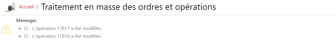 Une fois la confirmation faite, le message informe que les opérations / ordres ont été traités :