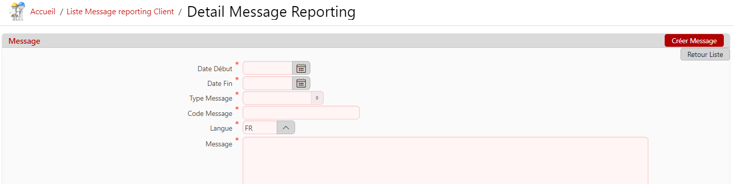 Une fois ces informations saisies, cliquez sur le bonton “Creer Message” pour rendre effectif le message.