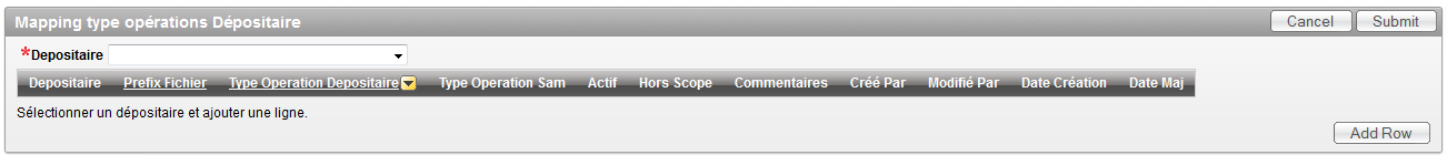 Ce champ permet de sélectionner le dépositaire pour lequel on souhaite modifier/ajouter des mapping d'opérations.