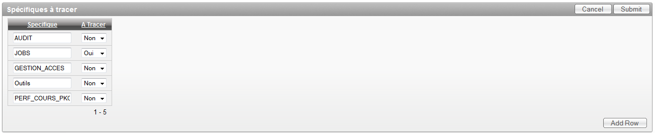 Ce panneau affiche toutes les occurrences de la table “SPEC_A_TRACER”.