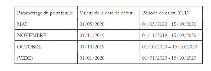 Ce champ va vous permettre de préciser sur le portefeuille quelle sera la plage de calcul de la performance