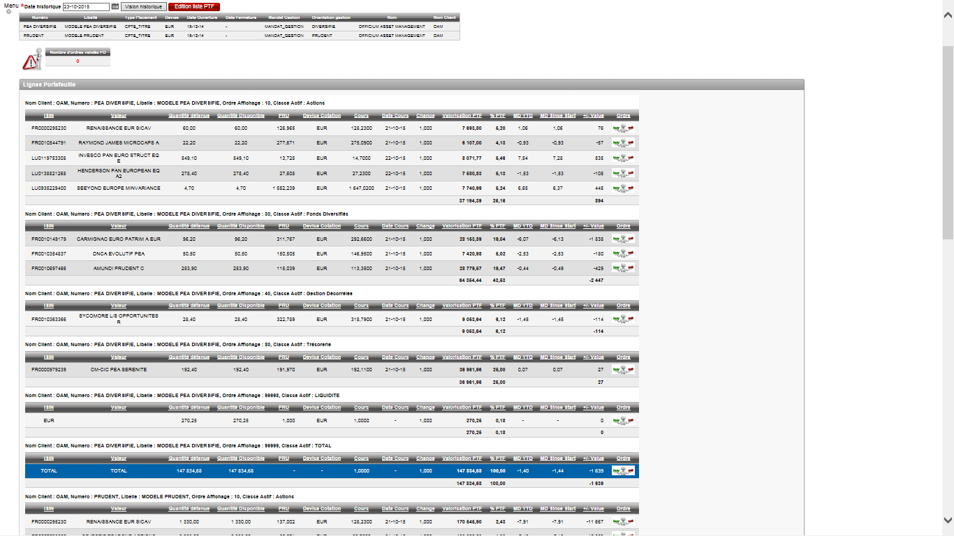 Ce rapport permet de visualiser les portefeuilles sélectionnés et dont le détail des lignes est affiché dans la partie basse de l'écran.
