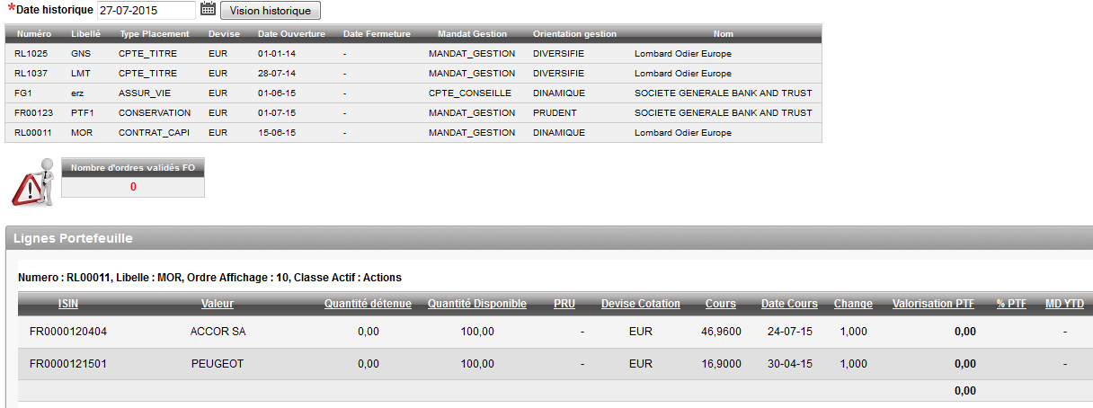 Description de l'écran : il permet de visualiser les lignes de plusieurs portefeuilles sélectionnés via cet écran.