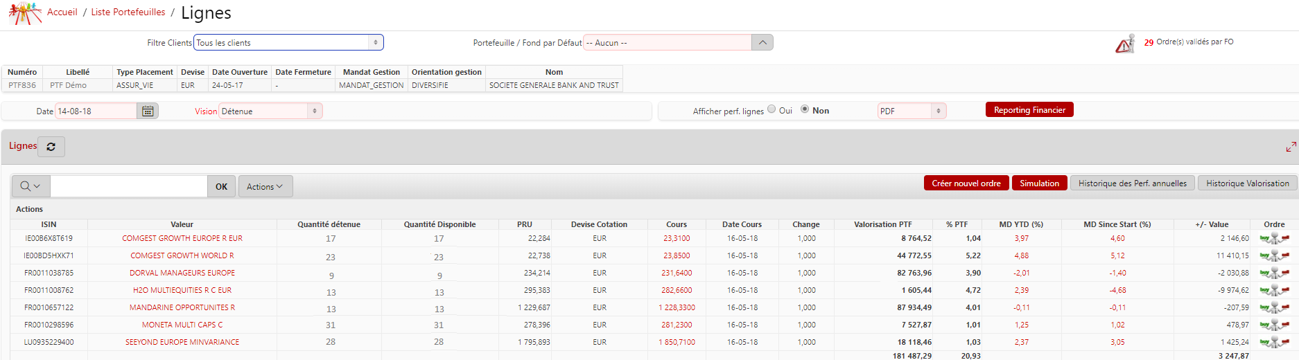 Une fois l'ordre/opération validé par le Back-Office, la ligne s'affiche comme ci-dessous :