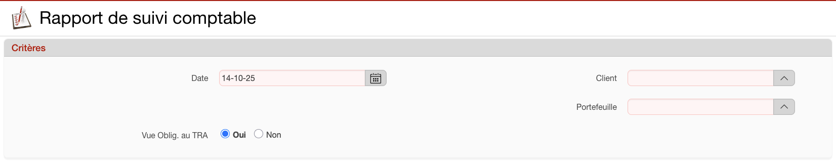 Une fois la date et l'un des 2 champs “Client” ou “Portefeuille”, rempli, le rapport se lance automatiquement.