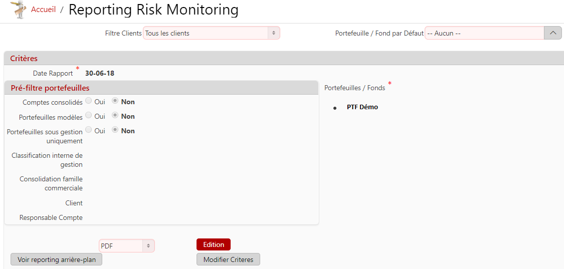 Si les paramètres sont corrects : on peut lancer le rapport en cliquant sur le bouton Edition ou le bouton Voir reporting arrière-plan.
