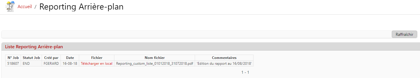 Description de l'écran :Cet écran permet de récupérer des rapports qui ont été lancés en arrière plan.