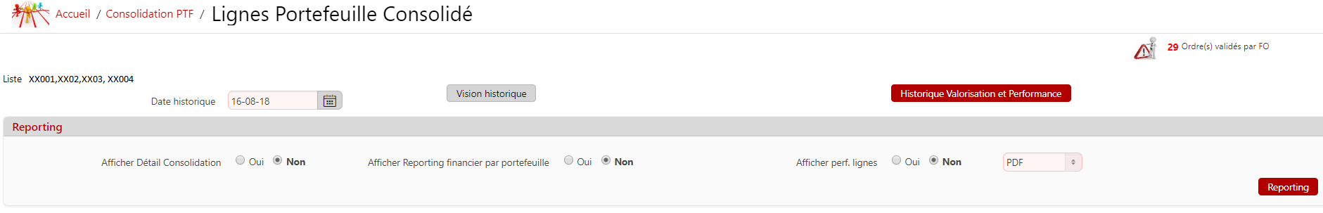 Les informations affichées correspondent à une consolidation des lignes des portefeuilles.