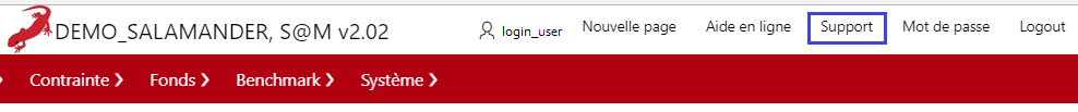 Description de l'écran : il permet de contacter l'équipe Salamander. Il est possible de transmettre un commentaire global, une demande d'amélioration ou encore l'existence d'un bug.