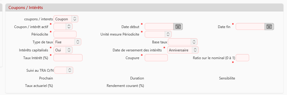 Pour les obligations avec coupons (code classe = OBLIGATIONS et code du type d'actifs = OBLIG)