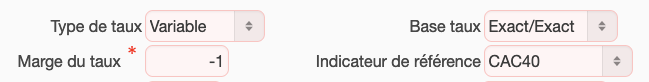 La marge du taux indique la valeur qui sera ajoutée (si positive) ou soustraite (si négative) à l'indicateur de référence.