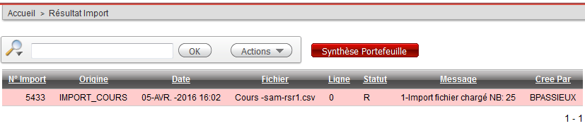Description de l'écran : Cet écran permet de déclencher l'importation des cours des valeurs à partir d'un fichier.